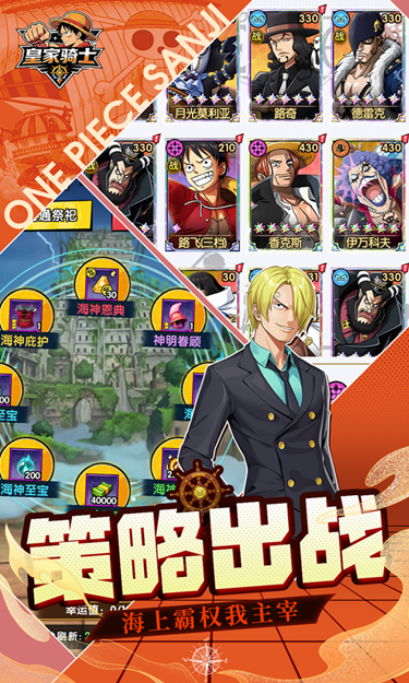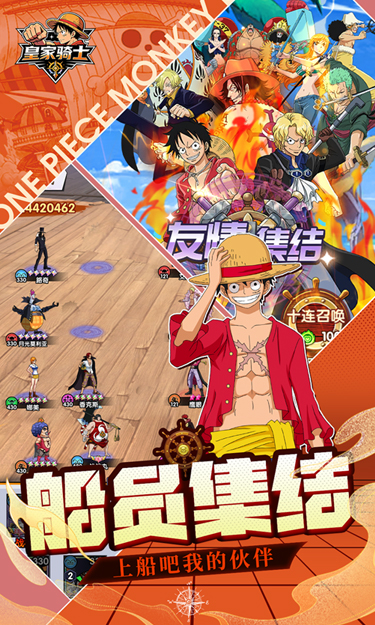 七大阵营羁绊交织:海军、海贼、草帽、强者、新时代、旧秩序七大阵营,解锁角色羁绊,收集精美船员卡牌,组建最强舰队,共同书写新世界传说!