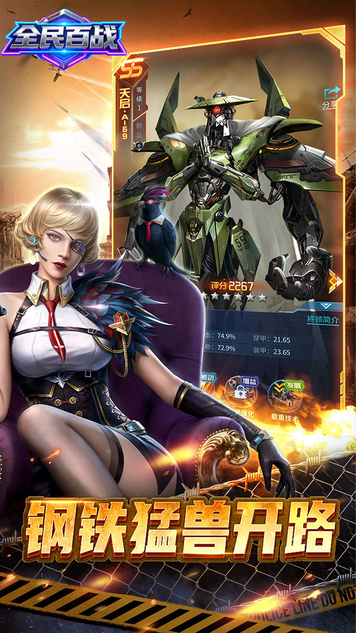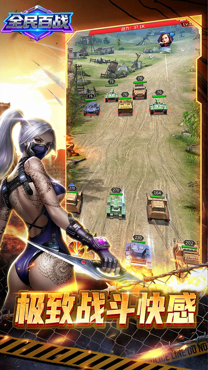 《全民百战》是一款以军事科技为主题的3D写实风格战争策略手游。由于晶能矿的发掘,地球科技实现了质的飞跃,却也引来了外星文明的入侵,地球陷入了一片废墟之中。作为人类领袖,你将扮演关键角色,亲自指挥和训练自己的队伍;通过在虚拟而真实的战场上自由部署兵力,探索最适合自己进攻或防守的战术。游戏中有数百种不同的战争武器等你研发和获取,每种武器的发展方向都不同,你需要带领他们参与惊险刺激的战斗,为了人类的未来而奋斗!
